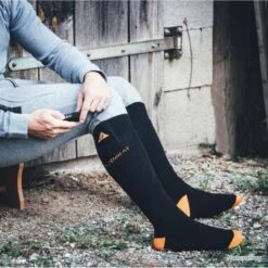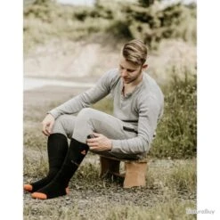– Chaussettes chauffantes, tissu doux et respirant. Element chauffant en fibre de carbone au niveau des orteils. Poche à batterie sur chaque chaussette.